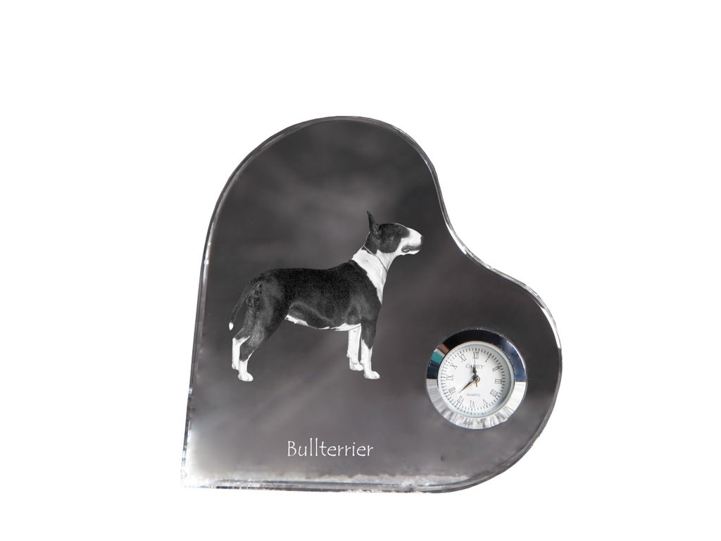 Bull Terrier, Bullterrier - Kristalluhr mit einem Hundebild, Herzregal-Uhr, personalisierte Standuhr der Marke Art-Dog
