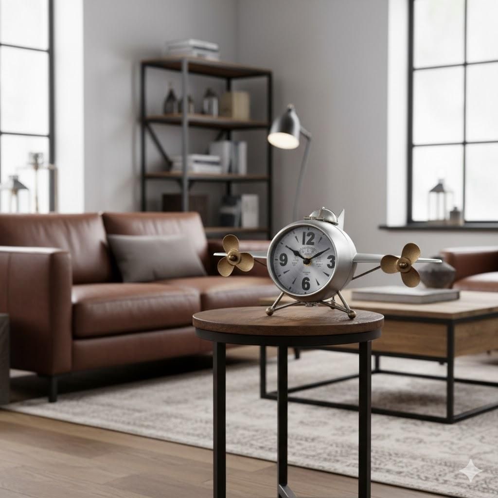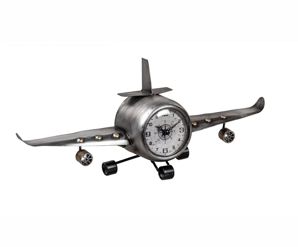formano Metall Standuhr Flugzeug 40 x 17 cm 3D Metall Uhr Silber XL Dekoration