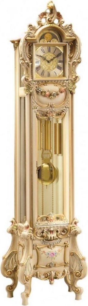 Casa Padrino Luxus Barock Standuhr Elfenbein / Mehrfarbig / Gold - Prunkvolle Massivholz Pendeluhr im Barockstil - Barock Interior - Barock Standuh...