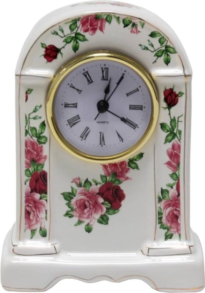 Kaminuhr Porzellan Uhr 16 cm Standuhr Tischuhr Rosen Motiv