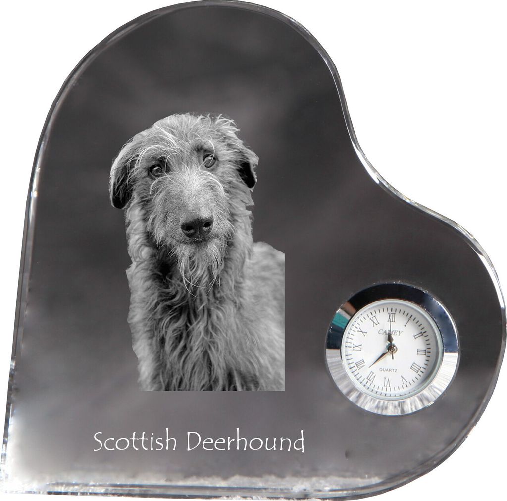 Deerhound, Schottischer Hirschhund, Scottish Deerhound - Kristalluhr mit einem Hundebild, Herzregal-Uhr, personalisierte Standuhr der Marke Art-Dog