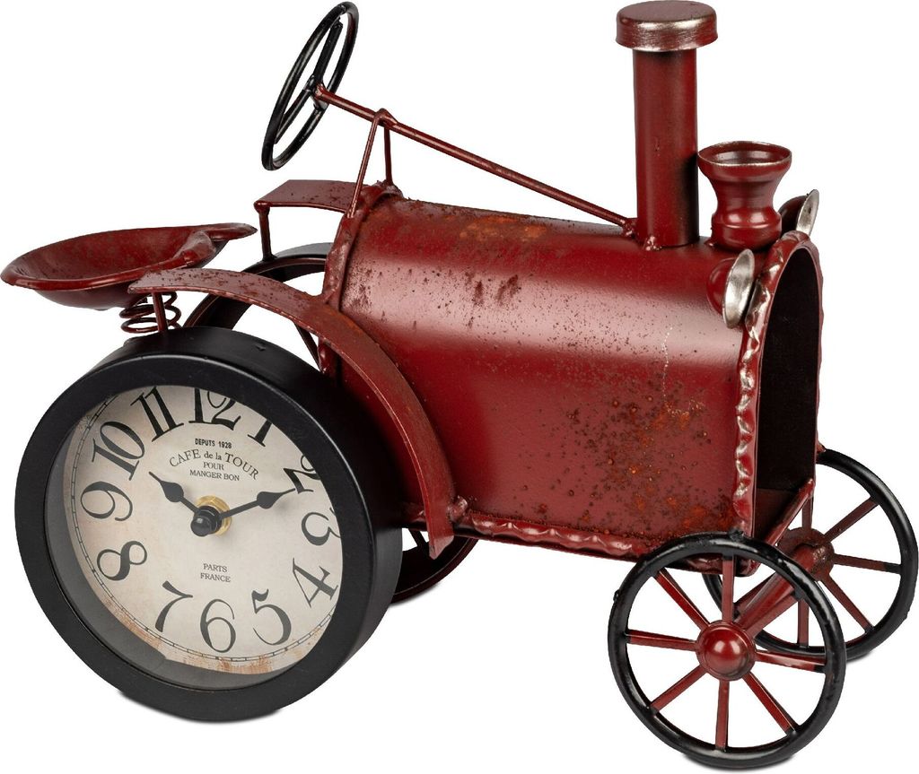 Standuhr, Tischuhr Traktor rot L. 30cm Metall + Glas Formano