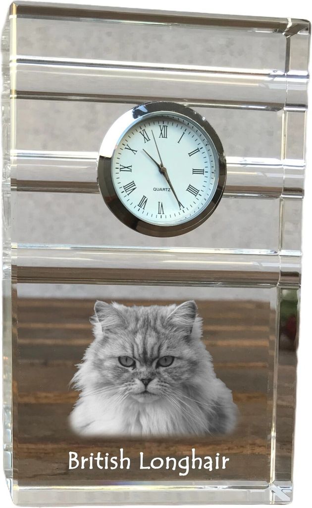 Britisch Langhaar - Glasuhr mit Foto, Katzenfoto im Kristall, personalisierte Standuhr für das Büro der Marke Art-Dog