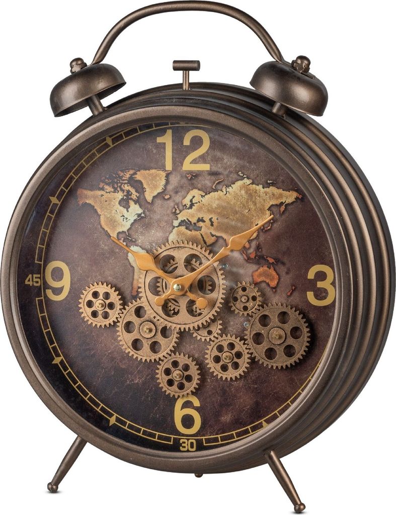 Tischuhr, Standuhr WELTKARTE ANTIK H. 48cm mit drehenden Zahnrädern gold Formano