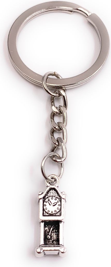 Onwomania Schlüsselanhänger Kuckucksuhr Vogel Standuhr Silber Metall Anhänger Charm