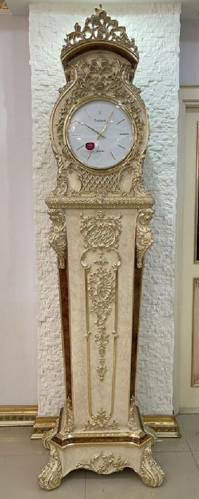 Casa Padrino Luxus Barock Standuhr Creme / Braun / Gold - Prunkvolle Massivholz Uhr im Barockstil - Luxus Möbel im Barockstil - Barock Möbel - Ba...