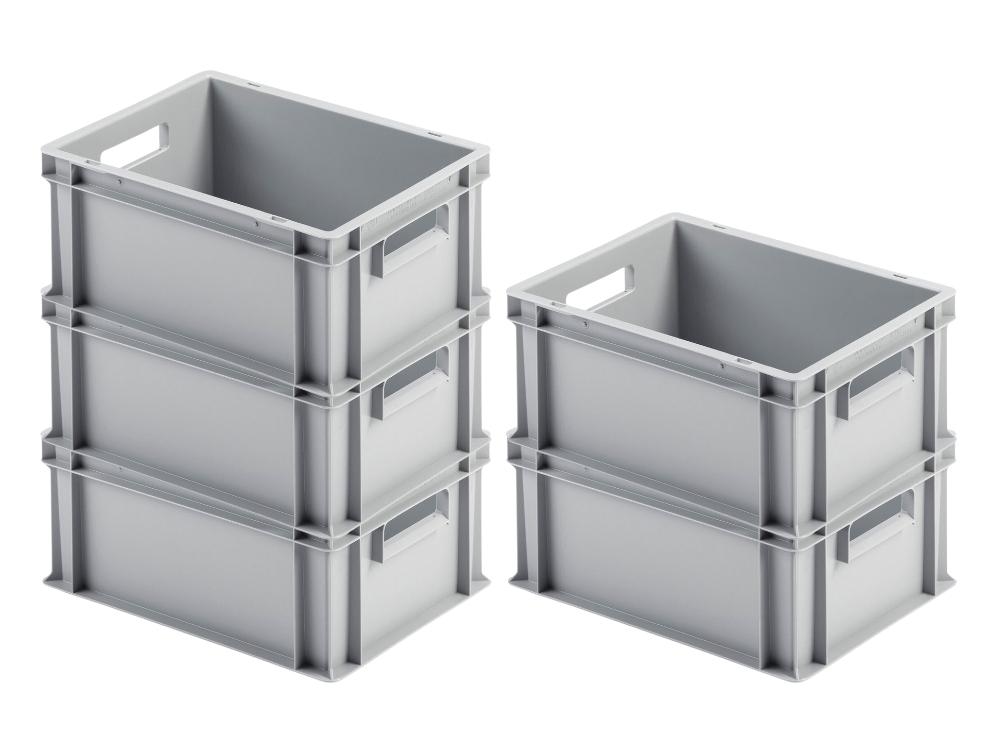 Eurobehälter mit geschlossenem Griff | HxBxT 23,5x30x40cm | 22 Liter | Grau | Eurobox, Transportbox, Transportbehälter, Stapelbehälter