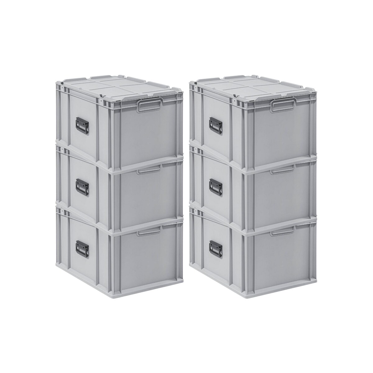 SparSet 5x Eurobehälter mit geschlossenem Griff | HxBxT 32x40x60cm | 56 Liter | Grau | Eurobox, Transportbox, Transportbehälter, Stapelbehälter