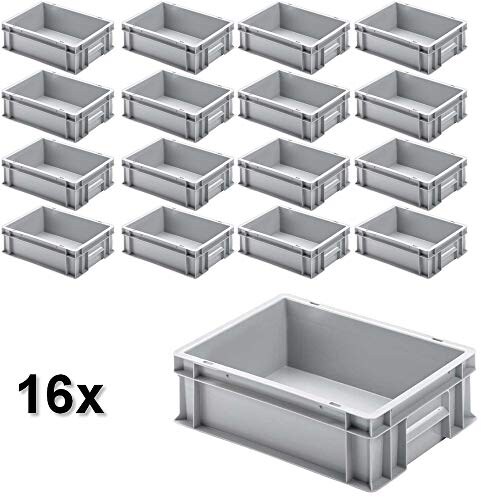 BRB 16x Euro-Stapelbehälter mit 2 Griffleisten, LxBxH 400x300x120 mm, 11 Liter, grau