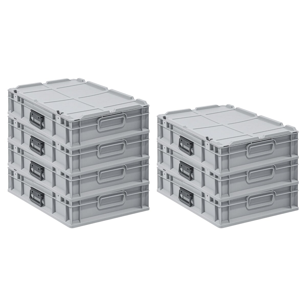 12 Eurobehälter + 4 Stapelbehälter GRATIS, Farbe grau, LxBxH 600 x 400 x 120 mm