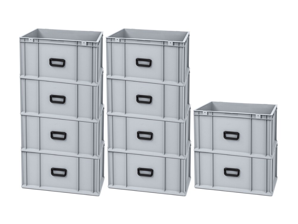 SparSet 10x Eurobehälter mit geschlossenem Griff | HxBxT 42x40x60cm | 70 Liter | Grau | Eurobox, Transportbox, Transportbehälter, Stapelbehälter