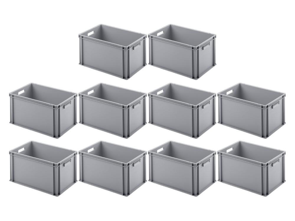 10x Euro-Stapelbehälter, LxBxH 600 x 400 x 90 mm, Inhalt 15 Liter, grau