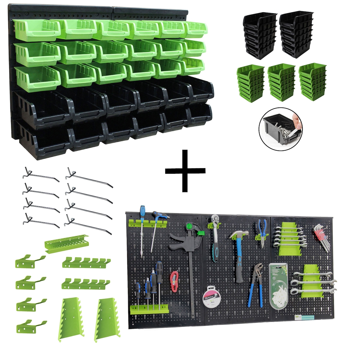 botle Werkzeugwand Lochwand aus Metall, Stapelboxen + Wandregal + Werkzeughalter 63-tlg Set, Kleinteilelager, Wandwerkstatt mit 36 stapelbaren Ro...