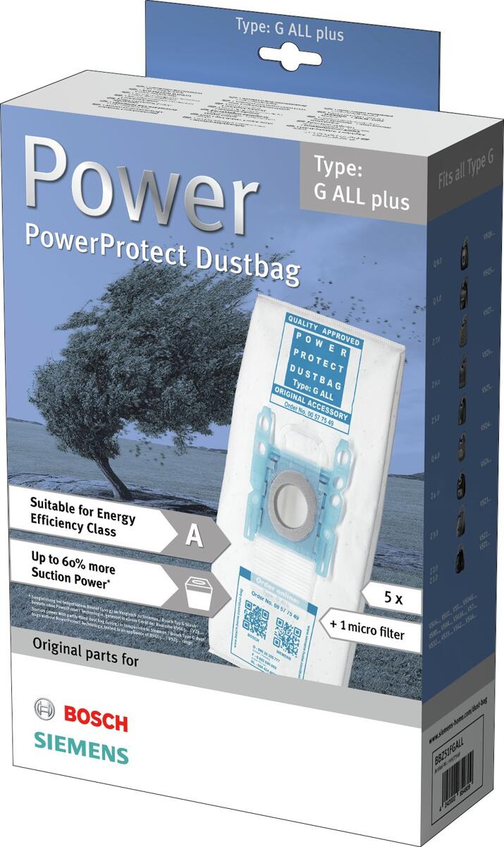 Bosch Siemens 00577549 Staubsaugerbeutel, PowerProtect Typ G ALL plus, (5 Stück + 1 Mikrofilter)