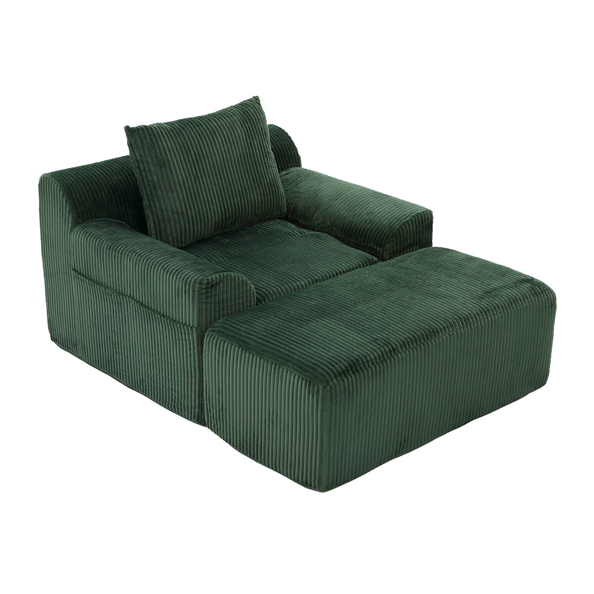 MODFU Übergroßer Sofasessel mit Fußpedal und Stauraum in Smaragdgrün, 147x110x67, Kordsamt Relaxsessel für Wohnzimmer und Büro