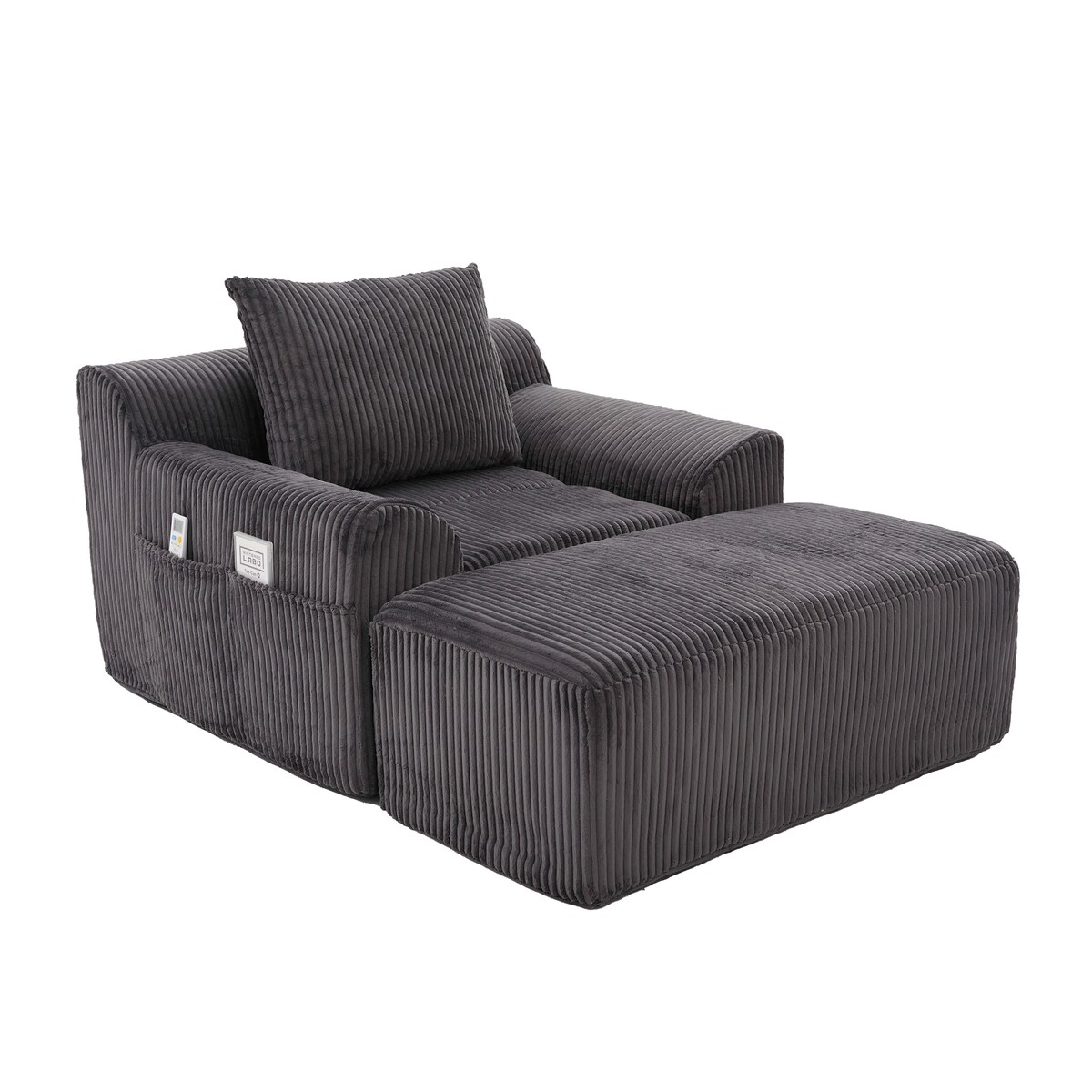 MODFU Bequemer Lesesessel mit Fußpedal und Stauraum in Dunkelgrau, 147x110x67, Kordsamt Relaxsessel für Wohnzimmer und Büro