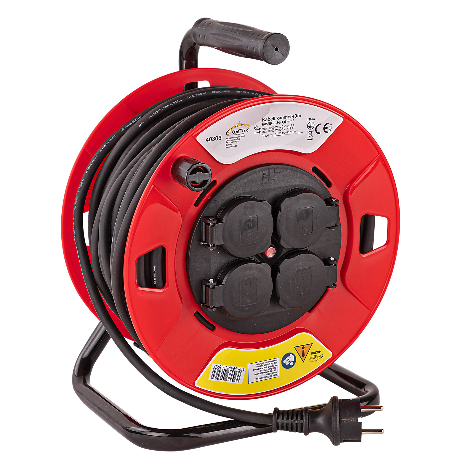 EMOS P19223 Kabeltrommel, SCHUKO, 4 Steckdosen, Länge 50m, 1,5mm², H07RN-F, Gummi, schwarz (1928245003)