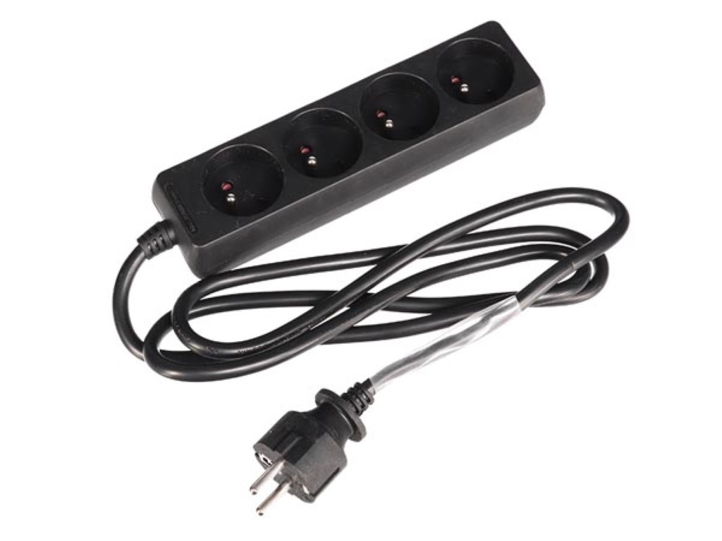 HQ Power Steckdosenleiste, 4 Steckdosen Typ E, Kabel 1.5 m, 3G1.5, Schrumpfschlauch zum Etikettieren, Innenbereich, Schwarz