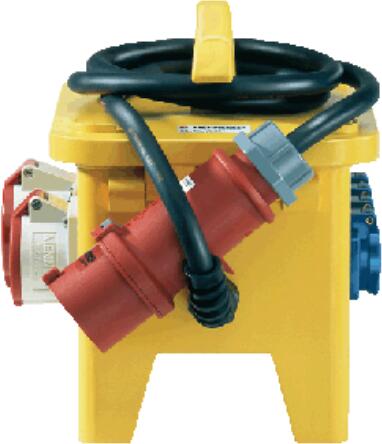 as - Schwabe MIXO Adapter/Stromverteiler RUHR – CEE-Stecker auf 2 CEE-Steckdosen und 1 Schuko Steckdose – Robuster Baustellen Starkstrom-Vertei...
