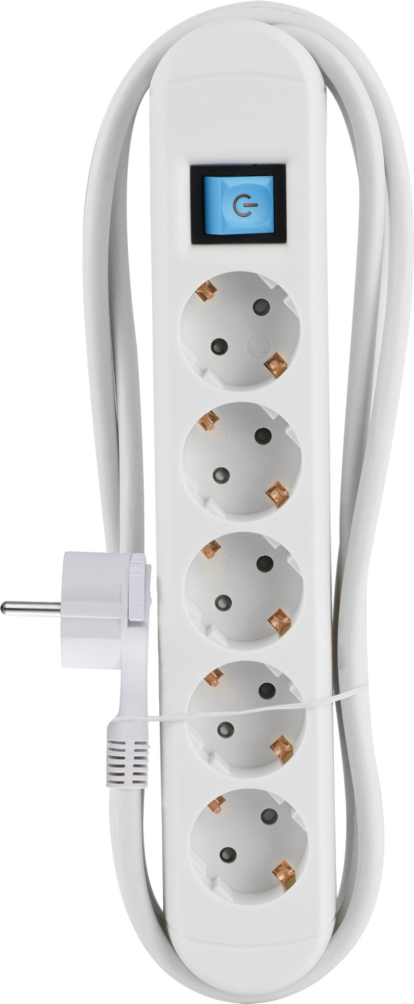 Solight Verlängerungskabel, 5 Steckdosen, weiß, Schalter, 3m