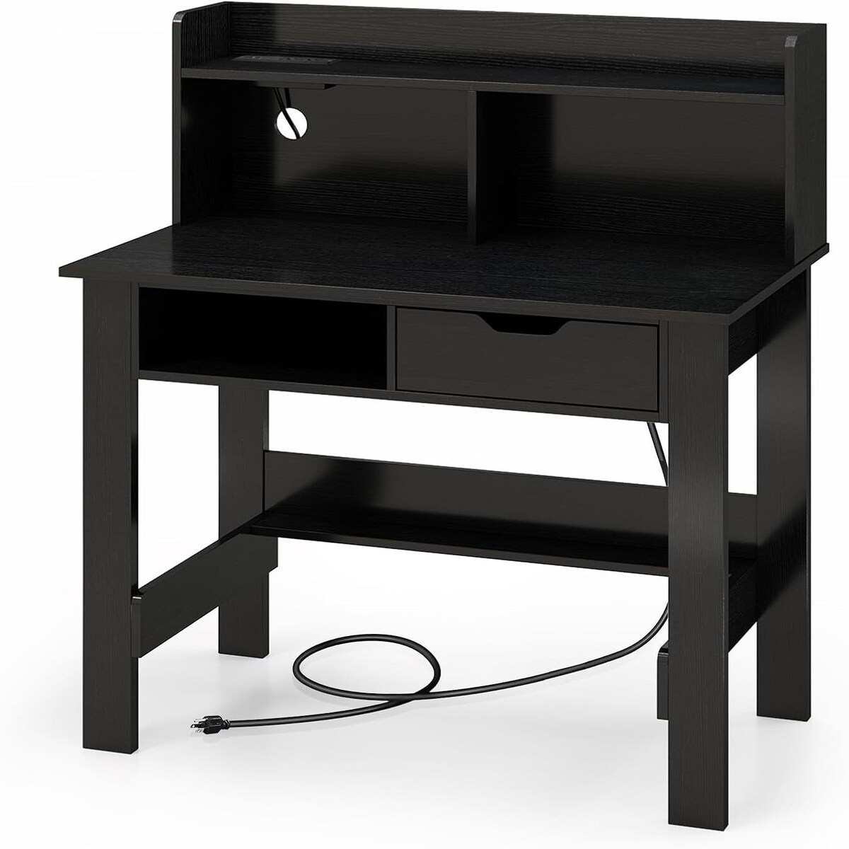 COSTWAY OSTWAY Schreibtisch mit Steckdosen, Kleiner Computertisch mit Zubehör, Offenem Fach & Schublade, PC Tisch