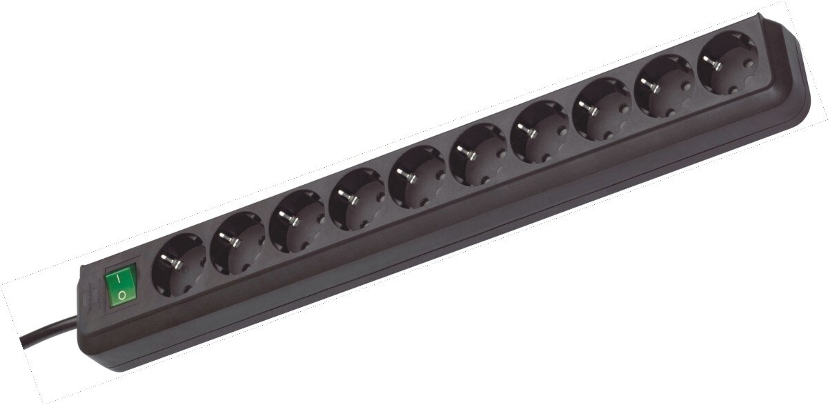 Brennenstuhl Eco-Line Steckdosenleiste 10-fach (Mehrfachsteckdose mit erhöhtem Berührungsschutz Schalter und 3m Kabel) schwarz Nr. 1159300010