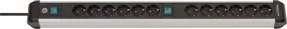 Brennenstuhl Premium-Alu-Line Steckdosenleiste 12-fach, Aluminium, mit 2 Schalter, 3m Kabel, schwarz (1391030200)