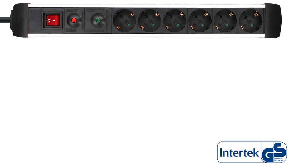 as-Schwabe 6-fach Steckdosenleiste 1,5m mit Überspannungsschutz und Schalter IP20