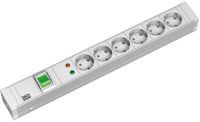Bachmann 19" PDU Basic Steckdosenleiste >1HE mit Überspannungsschutz, 6x Steckdose, 1x Schalter, weiß (333.005)