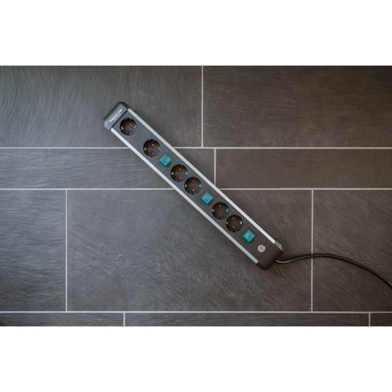Brennenstuhl Premium-Alu-Line Steckdosenleiste 6-fach / Steckerleiste aus hochwertigem Aluminium (Mehrfachsteckdose mit 3x 2-fach schaltbare