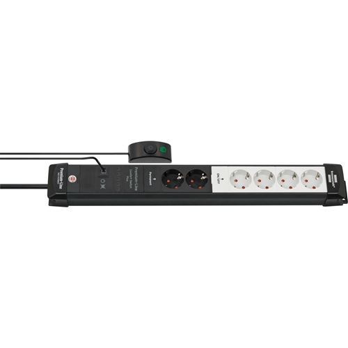 Brennenstuhl Premium-Line Comfort Switch Plus Steckdosenleiste 6-fach mit zusätzlichem Hand-/Fußschalter, 2xpemanent, 4x schaltbar, 3m Kabel, schwarz
