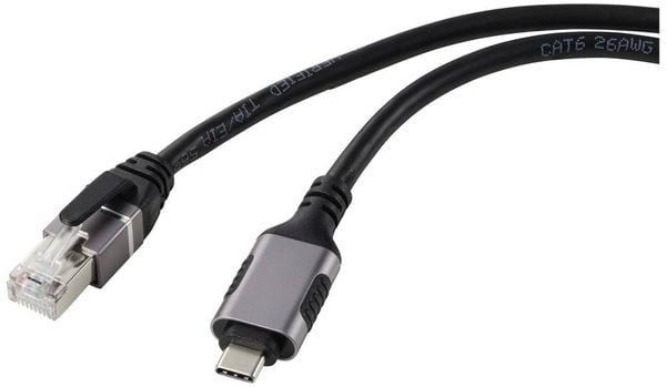 Renkforce USB, Netzwerk Adapterkabel [1x USB-C Stecker - 1x RJ45-Stecker] 1.80 m Aluminium-Stecker