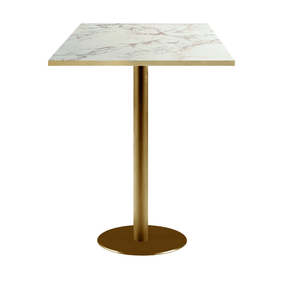 RestooTab - Stehtisch Rome goldmetallic 60x60 Dekor Marmor olympo Kanten messingfarben