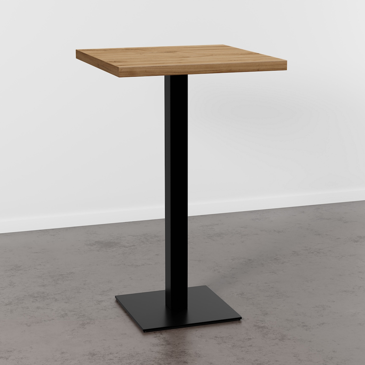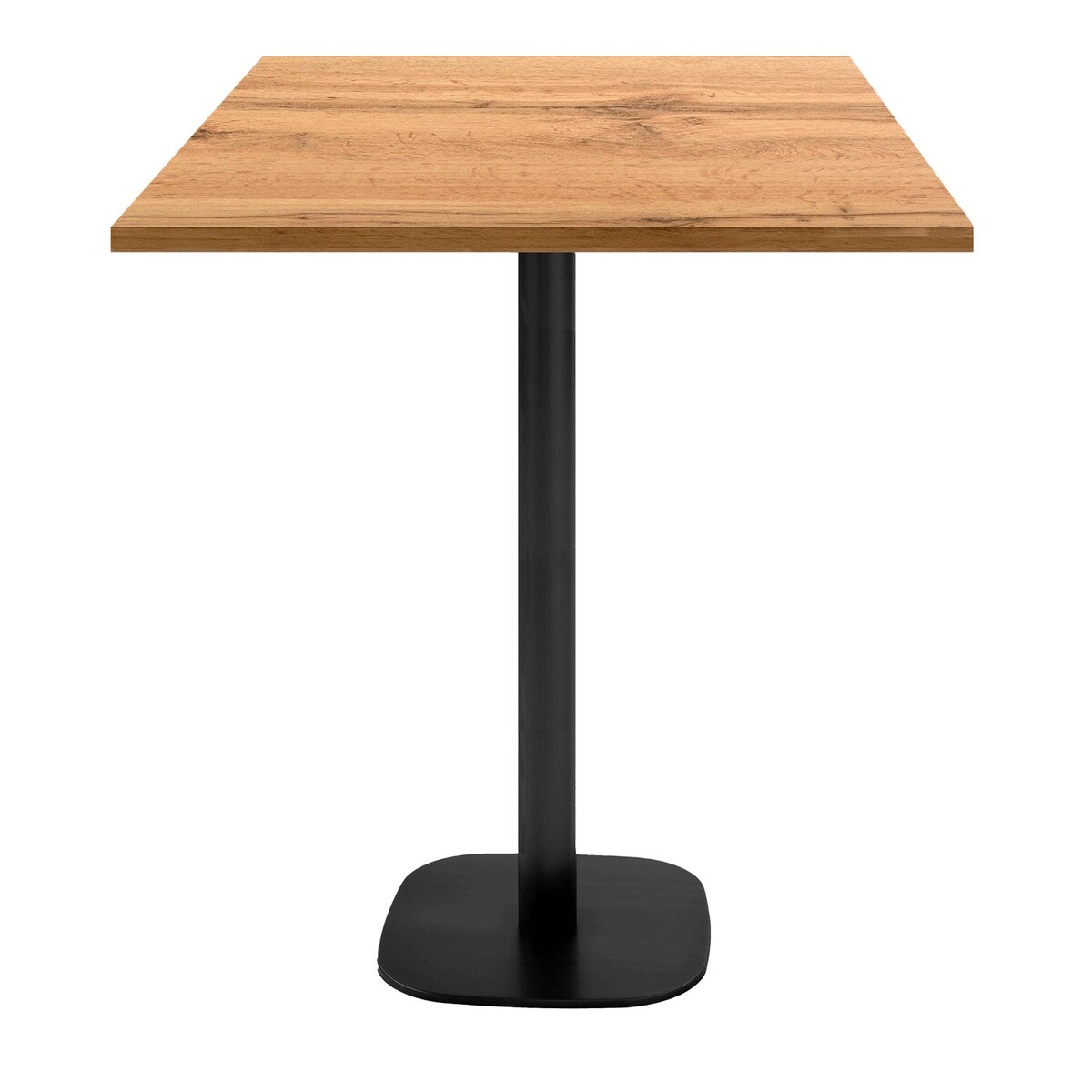Bistrotisch - Quadratischer Stehtisch - 60 x 60 cm - Zentraler Säulenfuß - Metallgestell - Holz-Tischplatte - Für 2 Personen - Für Café/Bistro