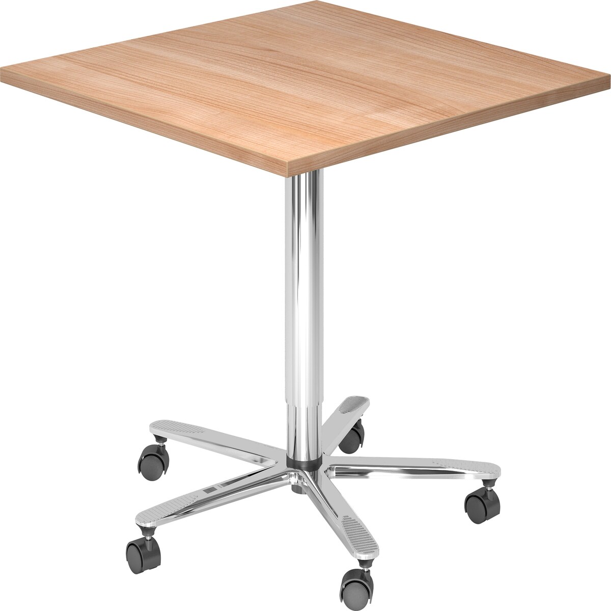 bümö Stehtisch Büro, Bistrotisch eckig 80 x 80 cm - Bartisch Buche, Stehtisch Holz-Platte, Säule aus Metall verchromt, Buffettisch, Säulentisch,