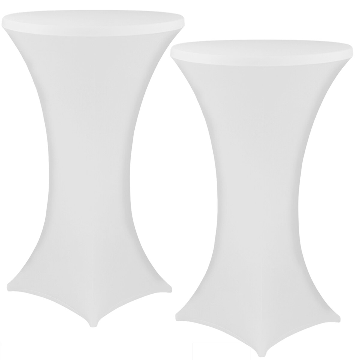 NYVI Stehtischhusse Gala Weiß Ø 80-85 cm 2er Set Elastische Premium Stretchhusse für gängige 110-120 cm hohe Bistrotische & Stehtische