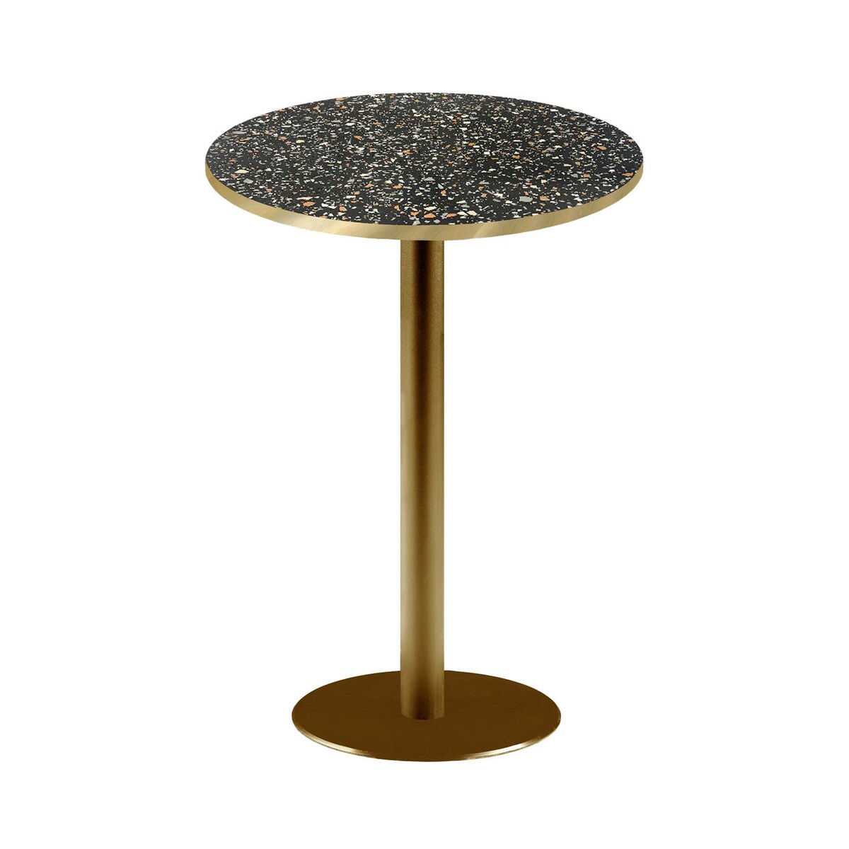 RestooTab - Stehtisch Rome goldmetallic Ø60 Dekor Terrazzo black chip Kanten messingfarben