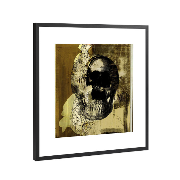 Poster mit Rahmen schwarz "Mano" artboxONE - Abstrakt - Totenkopf,Portrait,Streetart,Paris,Stencil,Urban,Graffiti,Geometrie,Formen,Brush