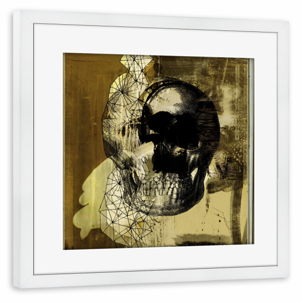 Poster mit Rahmen weiß "Mano" artboxONE - Abstrakt - Totenkopf,Portrait,Streetart,Paris,Stencil,Urban,Graffiti,Geometrie,Formen,Brush