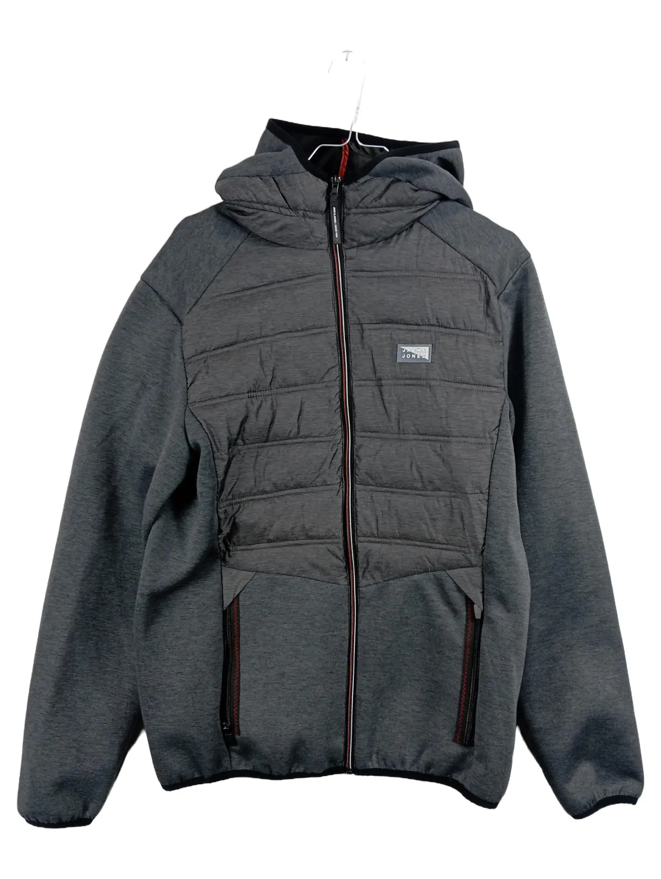 JACK & JONES Herren Hybrid Steppjacke Kapuze Grau Gr. S