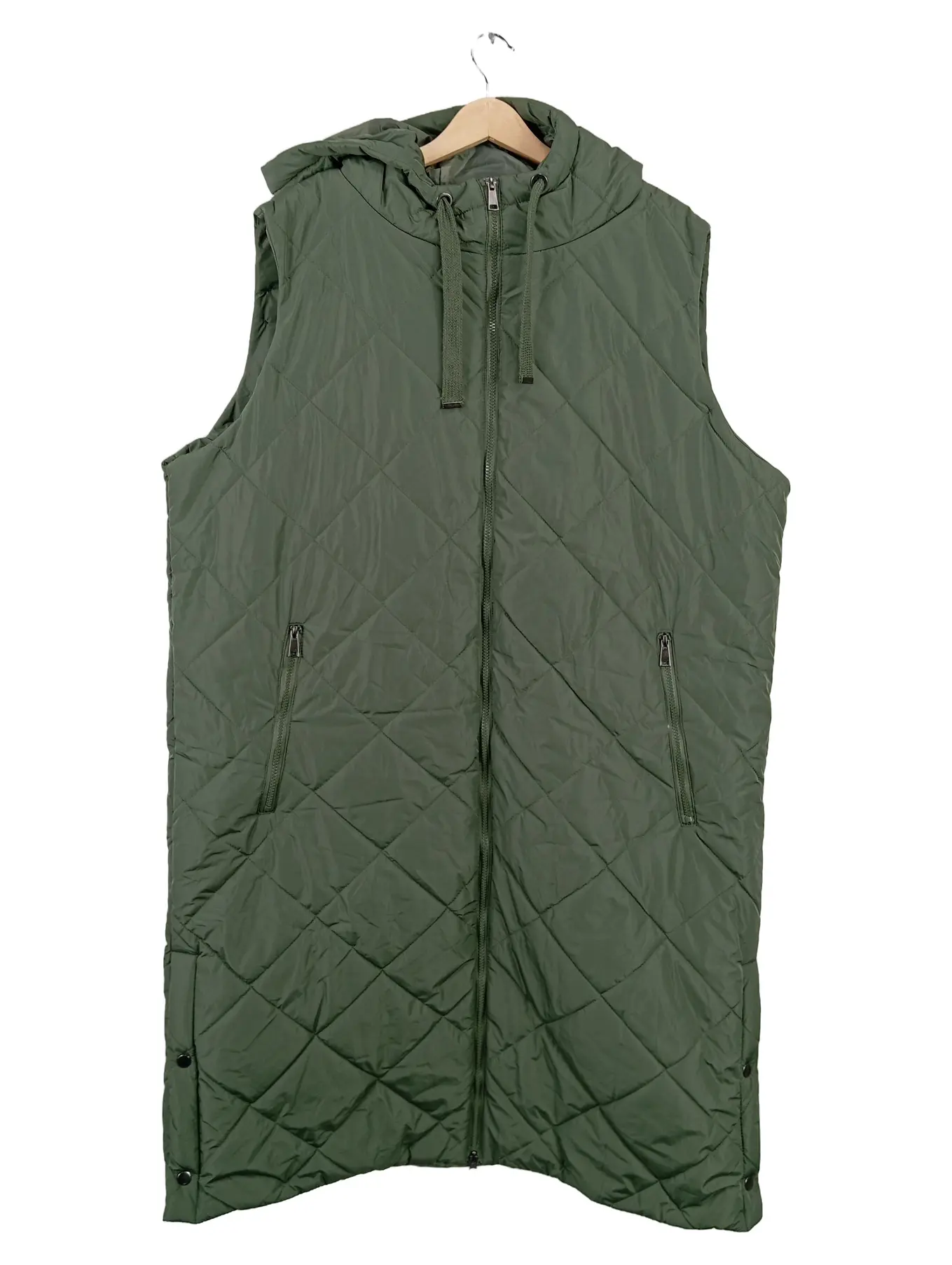 KAPALUA Steppweste Damen 3XL Oliv Kapuze Lang Wattiert Weste