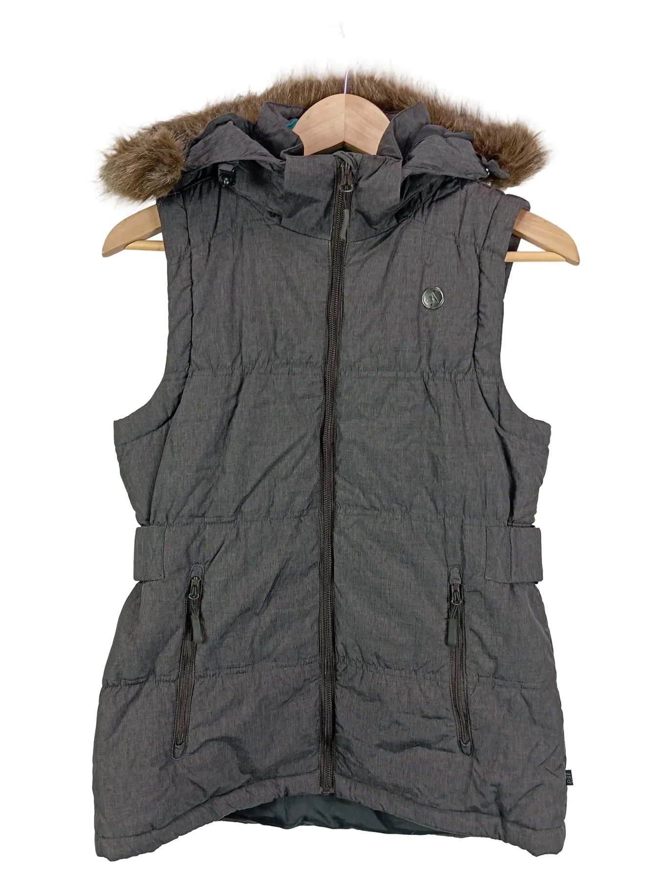 RODEO Damen Steppweste Grau XS mit Kapuze & Kunstfell Outdoor