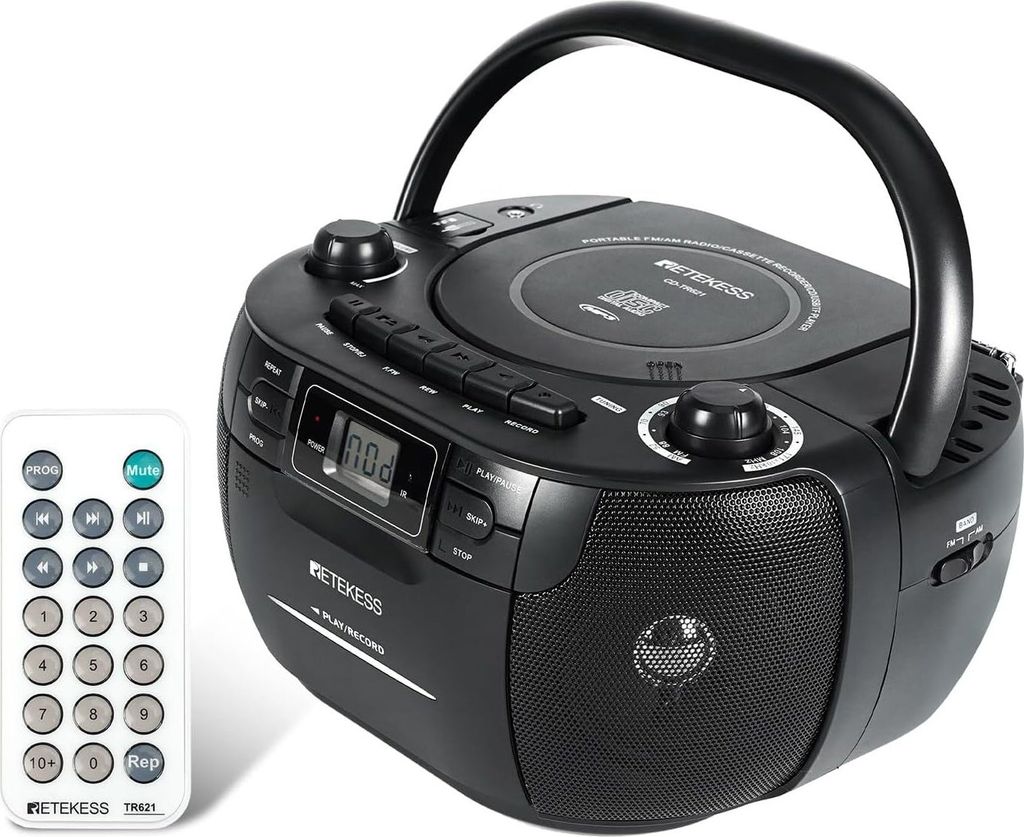 Retekess TR621 Tragbares CD Radio,Kassettenspieler CD,Stereo mit AM FM-Radio,Kassettenrekorder,Unterstützung von USB/TF/Kopfhörer, mit Fernbedienung