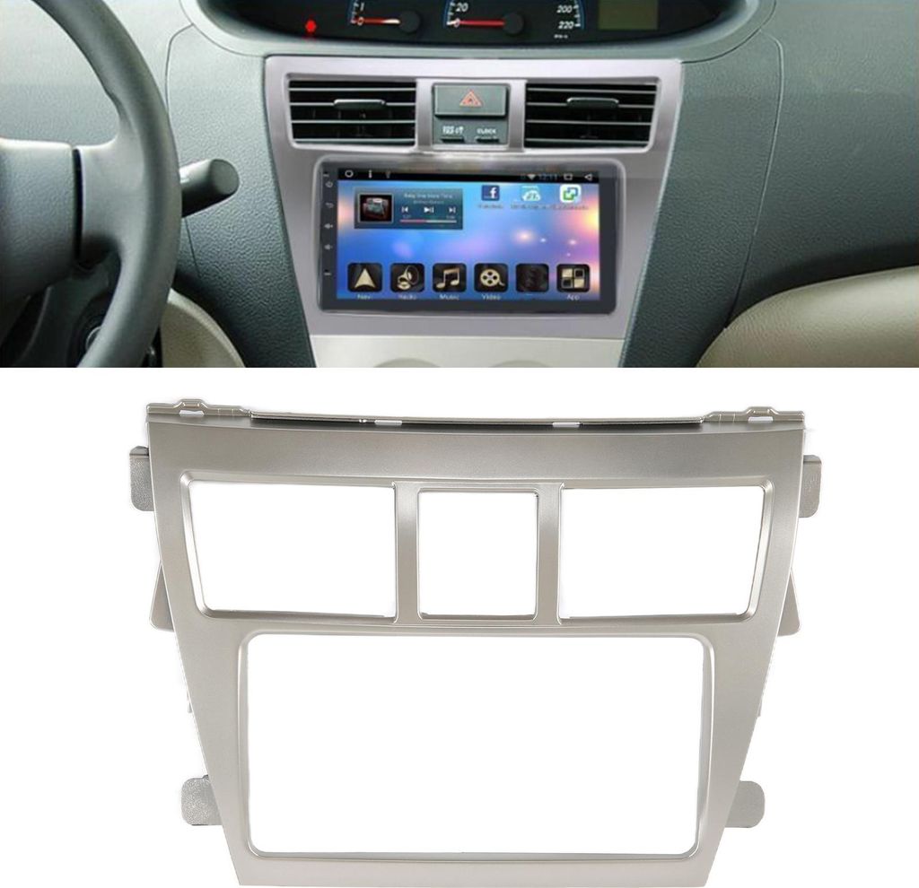 2Din Radio Stereo Blende Rahmen Dash CD Panel Trim Dekor Silber Ersatz für Vios Belta Yaris