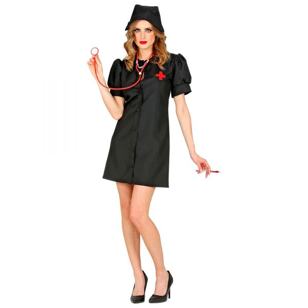 Dunkle Krankenschwester (Kleid, Haube, Stethoskop), L - Widmann