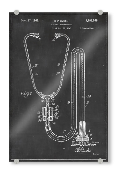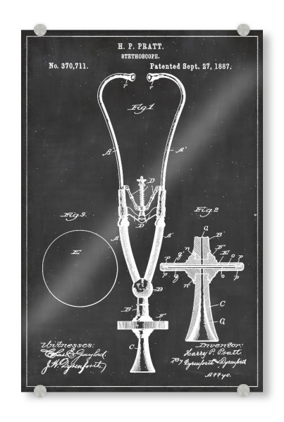 Acrylglasbild "Stethoskop patent" artboxONE - Schwarzweiß,Retro - Stethoskop,Patent,Arzt,Doktor,Hospital,Vintage,Retro,Krankenhaus,Gesundheit
