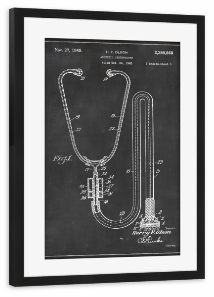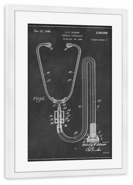 Poster mit Rahmen weiß "Stethoskop patent" artboxONE - Schwarzweiß,Retro - Stethoskop,Patent,Arzt,Doktor,Hospital,Vintage,Retro,Krankenhaus,Gesundheit