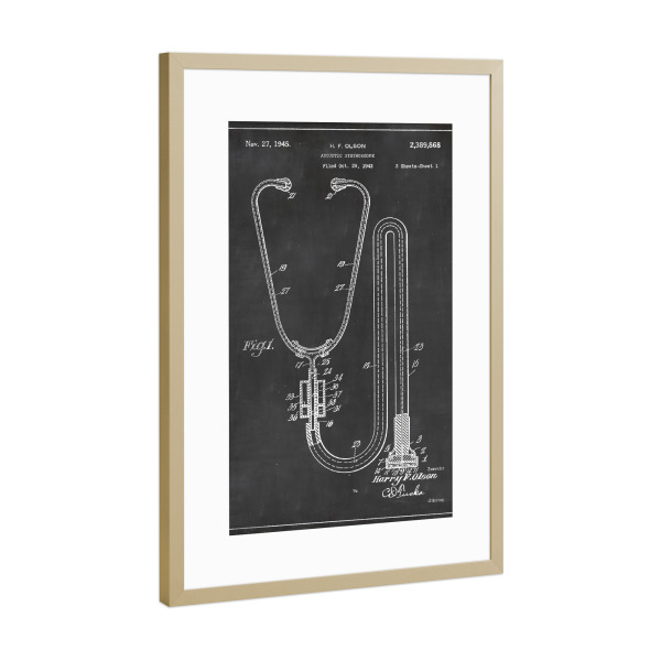 Poster mit Rahmen Gold "Stethoskop patent" artboxONE - Schwarzweiß,Retro - Stethoskop,Patent,Arzt,Doktor,Hospital,Vintage,Retro,Krankenhaus,Gesundheit