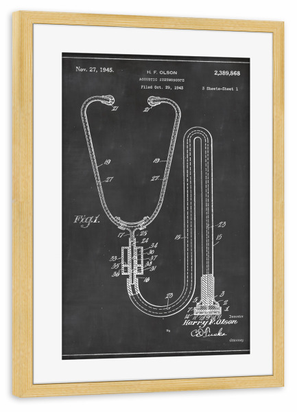 Poster mit Rahmen kiefer "Stethoskop patent" artboxONE - Schwarzweiß,Retro