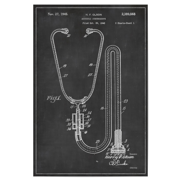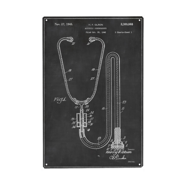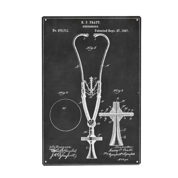Metall Poster "Stethoskop patent" artboxONE - Schwarzweiß,Retro - Stethoskop,Patent,Arzt,Doktor,Hospital,Vintage,Retro,Krankenhaus,Gesundheit